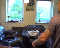 Andy has invited his new girlfriend Sonia round to his apartment for a romantic night in. Andy is banking on it being his lucky night! What Andy forgot though is that his roommate Lewis is a slob! Andy comes home to discover the house is in a complete mess! He is so angry as he knows it will ruin his chance of having a good time with his girl! He shouts at his lazy flatmate Lewis to get his mess sorted out! Lewis really couldn't care less and as soon as Andy has gone out he settles back on his sofa, switches on a DVD and starts watching some porn. Lewis is really 'enjoying' himself when Andy comes back and catches him jerking off! Andy is a strong muscle bound lad and soon grabs Lewis, overpowers him and his him over his lap on the sofa and begins to soundly spank his bottom. Lewis and Andy are normally best mates and Lewis can't quite believe this is happening! Andy is so mad though as he knows his chances of getting laid that night are ruined. He pulls down Lewis Jeans with one hand whilst the other hand is holding the sorry lad firmly in place. The beating continues over Lewis's bright green underwear! The boxers hardly offers any protection from Andy's big hands and even less when Andy actually rips them off Lewis! You can hear them tear as Lewis's now bruised bottom is fully exposed! Lewis can hardly bear the pain and is really struggling and trying to break free but his attempts are futile as Andy pins him down and continues spanking his bare bottom. Towards the end, Lewis manages to struggle onto the floor but Andy ides not let up and grabs him back and continues to punish his friend. Finally, after letting go of his frustration on his friends bottom Andy gets up throws Lewis back onto the sofa and storms off leaving Lewis near to tears and trying to soothe his tender cheeks.....