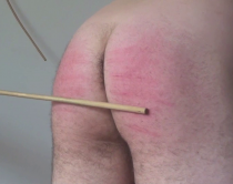 Completely naked, this masculine straight lad gets his bare bottom caned! By the time the 24th stroke has landed, Danny's bottom is left sore and red with the lines from the cane visable across his cheeks!