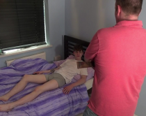 A nervous Jason steps up his attempts to talk his way out of any further punishment, but all to no avail. Dad hauls him over his knee and warms the seat of his tight grey pants, first by hand and then with the leather strap. He makes it abundantly clear that his son isn't going anywhere until he has been taught a very painful lesson!