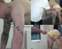 Every single one of these whacks from the paddle hit the spot and you can see Jenson struggling to hold his position. The marks on his bottom leave you in no doubt as to how effective the punishment has been!
