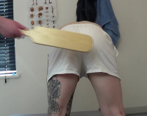 The first 6 whacks are across his tight shorts, then another 6 on his underpants and then finally 6 more on his bare bottom.