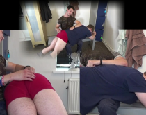 When the three minutes are up, it's time to swap places, and Marcus's turn to go over John's knee... but with lots of goading and posturing along the lines of, 'Is that all you got?', neither seems to be presenting any serious competition to Andy in the disciplinarian stakes... or so these two miscreants would have each other believe!