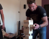 From Straight Lads Spanked: Bailey, Andy and Liam are all having a lads night in! The pizza and fried chicken has been munched and the beer is flowing! They decide to play their own forfeit version of Giant Jenga! This is one game you don't want to lose! The unlucky lad who makes the tower fall has to drop his trousers and underwear, bend over and receive some set punishment from the other two lads! The forfeit gets harder with each round with different implements being introduced. Of course this also means that the spanked lad may be able to get his revenge in a later round!