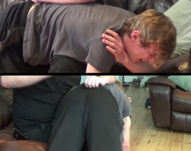 Alex isn't thrilled by the prospect, you can tell, but he does at least admit that he probably deserves it, and in any case, if he wants to make some cash, he has got no choice! So over Dave's knee he goes, for a spanking that Dave admits he is going to enjoy administering!