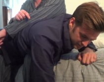 The handsome but lazy young man is then dragged over his fathers knee and has his bottom soundly spanked and slippered!