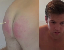 By the time the 24th stroke has landed, Ben's bottom is left sore and red with stripes from the cane visable across his by now tender bottom!
