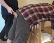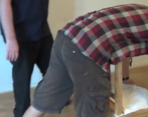The gang of lads that Ben belongs to have contributed money to pay for his birthday spanking! As Ben is 24 this year he gets 24 swats! Some from the Leather Paddle and some from the Cane. Mr X delivers the first set over Ben's jeans.