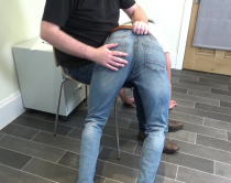 Dad puts the foolish youngster over his knee and spanks him hard with his hand on the seat of his tight jeans, before ordering him to pass him the brush. A well-deserved whacking follows that soon has Christian saying he is sorry and begging Dad to stop, but it's clear that Dad has got no intention of stopping until his son is a lot sorrier than this! Standing the lad up again, he pulls down his jeans and puts him back over his knee to apply his firm hand and the brush to the seat of Christian's bright red pants.