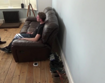 Dexter is still trying to talk his way out of any further punishment, but I think we all knew that was never going to work! He is told to bend over the sofa again for six final whacks with the leather belt across his bare buttocks!