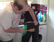 If that is not bad enough, Dad than grabs a wooden spatula and proceeds to spank Dom first of all whilst he is bent over the sink and then again over his knee.