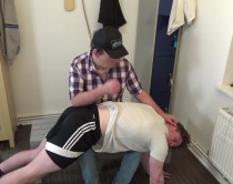 This means Fraser is going to get punished. An over the knee spanking followed by 18 whacks from the wooden paddle. Fraser has clearly been working out and the sight of his muscular body as he stands in position for the paddle is a sight to behold indeed!