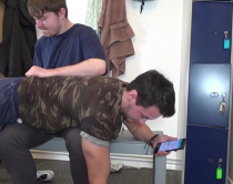 When the three minutes are up, it's time to swap places, and Marcus's turn to go over John's knee... but with lots of goading and posturing along the lines of, 'Is that all you got?', neither seems to be presenting any serious competition to Andy in the disciplinarian stakes... or so these two miscreants would have each other believe!