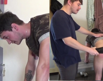 But in this male corporal punishment video, just as Andy had done to them, it's time to lose the undies and for the lads to spank each other on their bare bottoms!