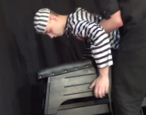 The guard shows no mercy as he swings the rod onto the prisoners exposed bottom. The pain is clear to see in the young delinquents face. Karl can only helplessly pull against his restraints as the rod cuts stripes into his backside.... The guard canes 18 year old Karl relentlessly and his bottom is left with countless welts where the cane has landed.