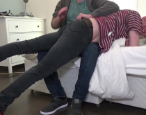 By the time he has counted out 200 spanks, Simon is very clearly a very shaken, sore and sorry boy. But his landlord intends to make sure that he teaches his young tenant an enduring lesson about attitude and responsibility. He pulls down the lad's pants, telling him that the last 50 will be on his bare bottom!