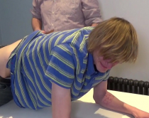 Bending over the table again, Zach is whacked hard across the seat of his tight white pants, and eventually, when he is ordered to pull his pants down, on his bare bottom. Dad is determined to get through to the wayward lad this time!
